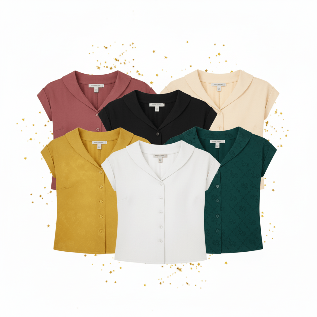 This blouse is one of the most versatile things I own. The collar is flattering, the fit is consistent across sizes, and it tucks or wears out equally well. Black for Maleficent, teal for Tiana, yellow for Belle, pink for Aurora. Same silhouette, different character every time. I own several and wear them outside the parks too.
