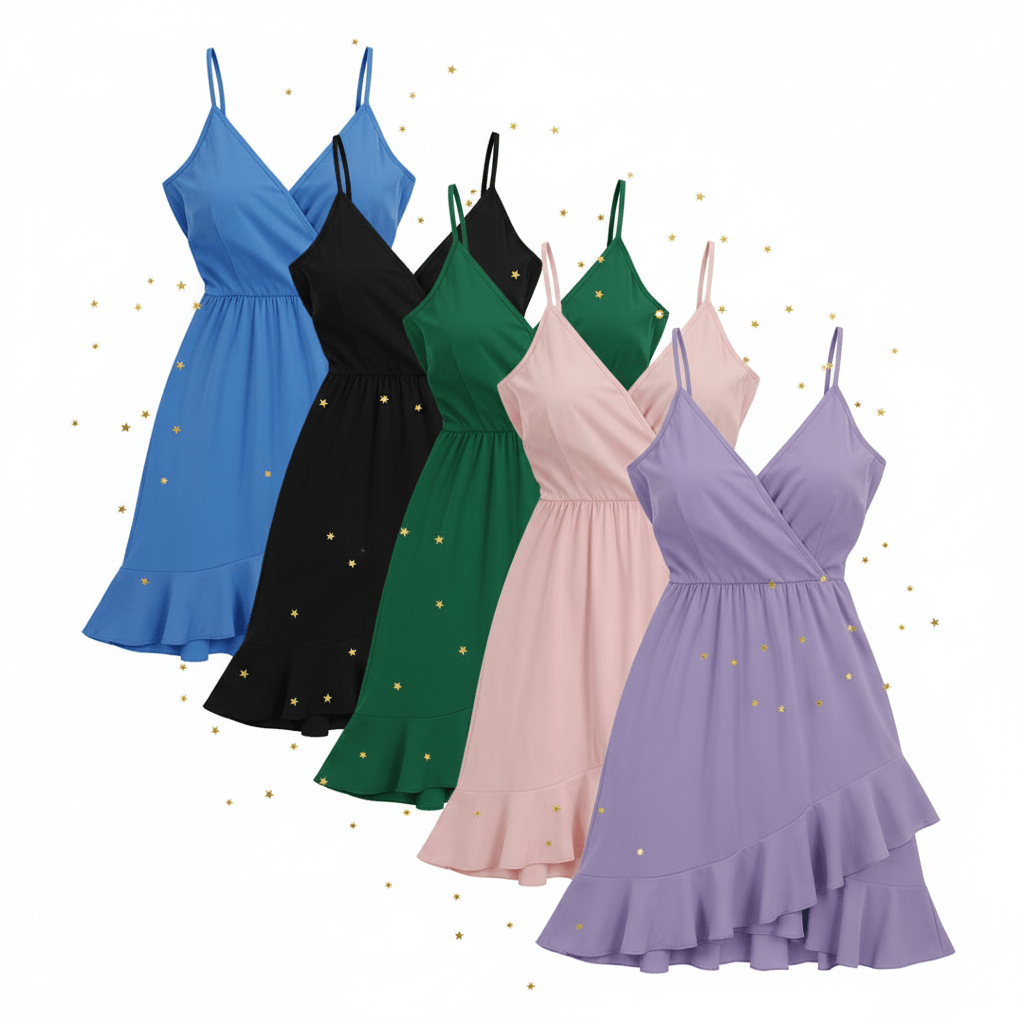 The wrap front is forgiving, the ruffle hem moves well in the heat, and it works just as well on a regular Tuesday as it does at the park. Blue for Cinderella, black for Maleficent, green for Tiana, pink for Aurora, lavender for Rapunzel. One silhouette that does the work for you. That's what a real closet staple looks like.
